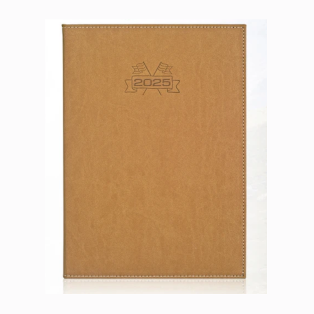 • Cubierta en similpiel marrón con cosido perimetral y grabación de año a laser.