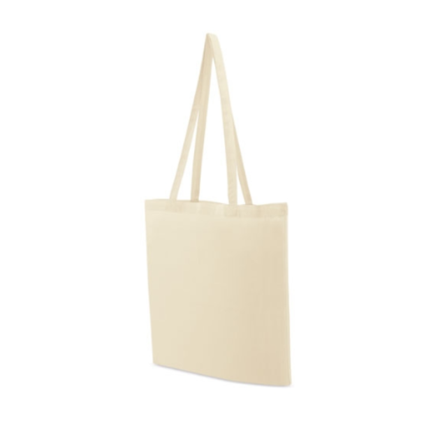 La Bolsa 100% Algodón Orgánico de 38x42cm con asa larga es una resistente bolsa de algodón 140gr/m2. Con cómodas asas largas de 72cm. En color crema. Perfectas para personalizar para regalos o como publicidad de empresa.