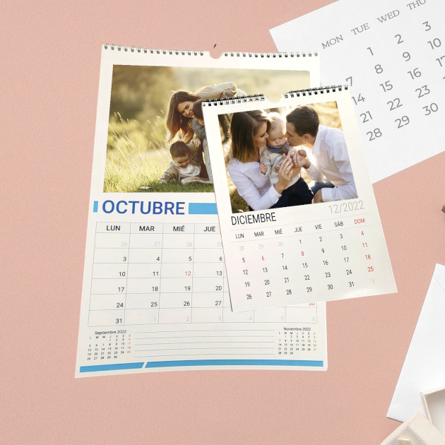 Con nuestro Calendario Laser Pared 12 páginas 2026 está hecho en papel mate 280gr. Tiene espiral y colgador para que puedas colgarlo en tu pared y puedas pasar cómodamente las paginas. Personaliza cada mes con tus mejores recuerdos.