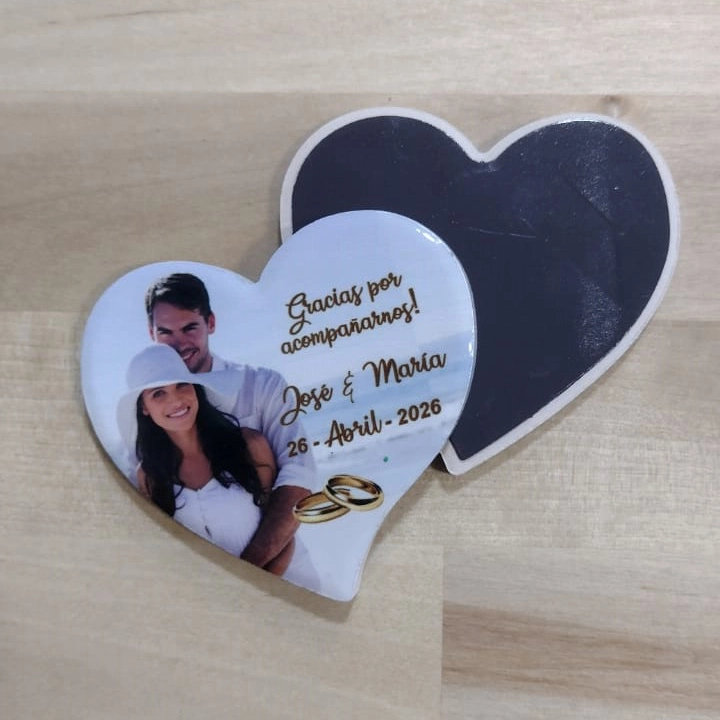 Con nuestro imán cerámico corazón 70x70mm personalizable podrás hacer tu mismo tu propio diseño de forma fácil. Podrás añadir fotos, textos con diferentes tipos de letra, emoticonos, dibujitos, etc. Perfecto como bonito y elegante recuerdo de tu evento.
