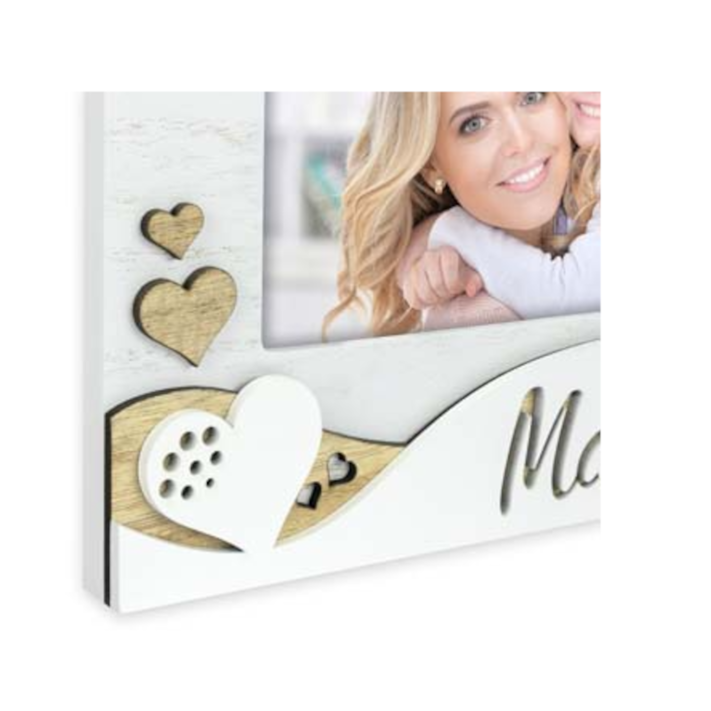 El Marco Mod. ANNA 10×15 es un precioso marco de madera color blanco con la inscripción Mama en decoración 3D en relieve en forma de corazón. Perfecto para colocarlo sobre una mesa, y regalarlo a esa madre tan especial.