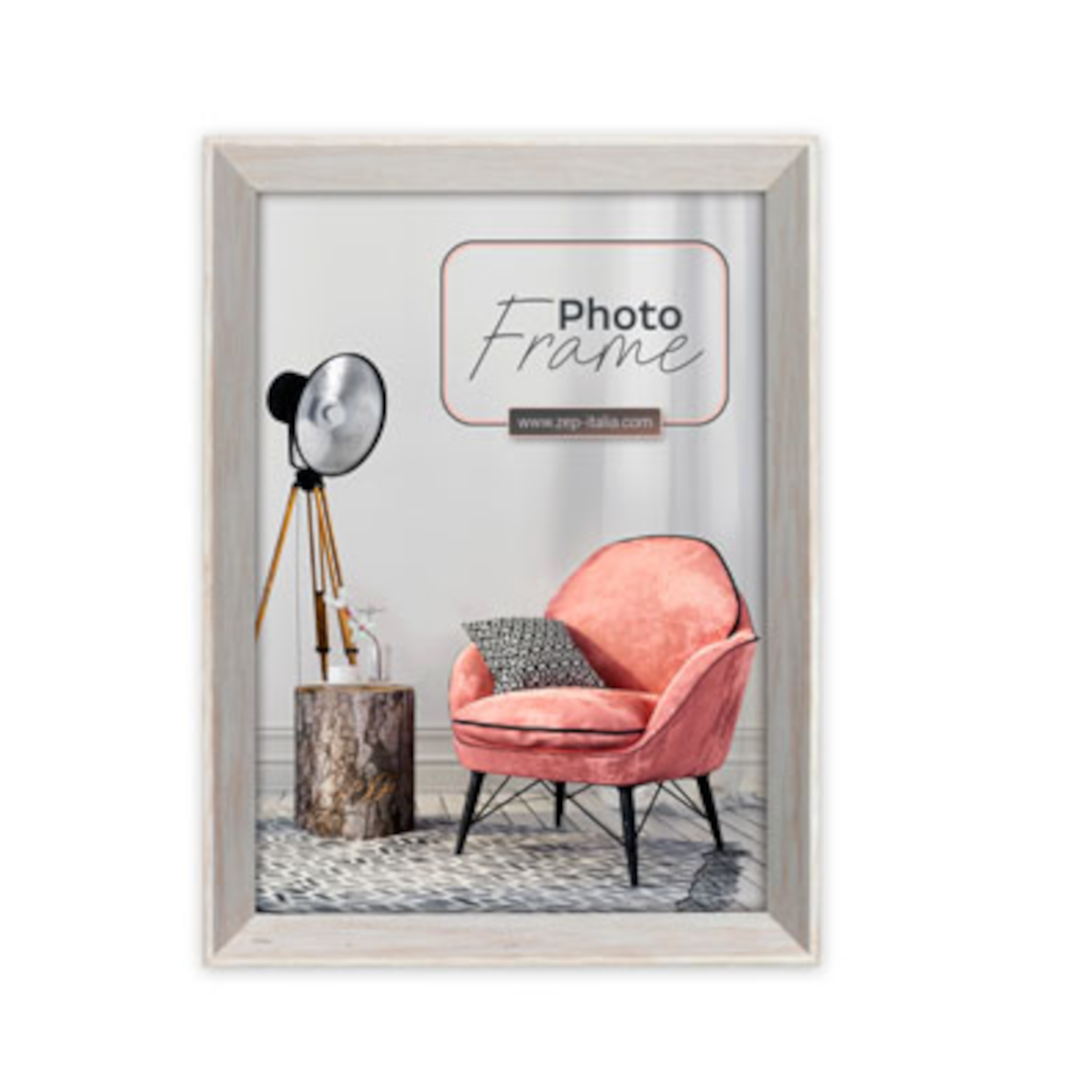 El Marco Mod. Dora White es un marco de plástico, color blanco grisáceo, efecto madera, perfil cuadrado. Perfecto para colocarlo sobre la mesa o en la pared.