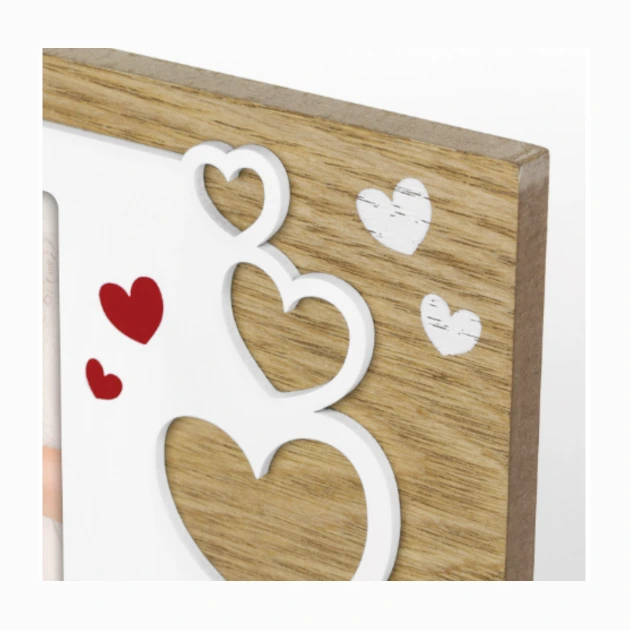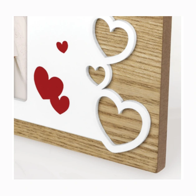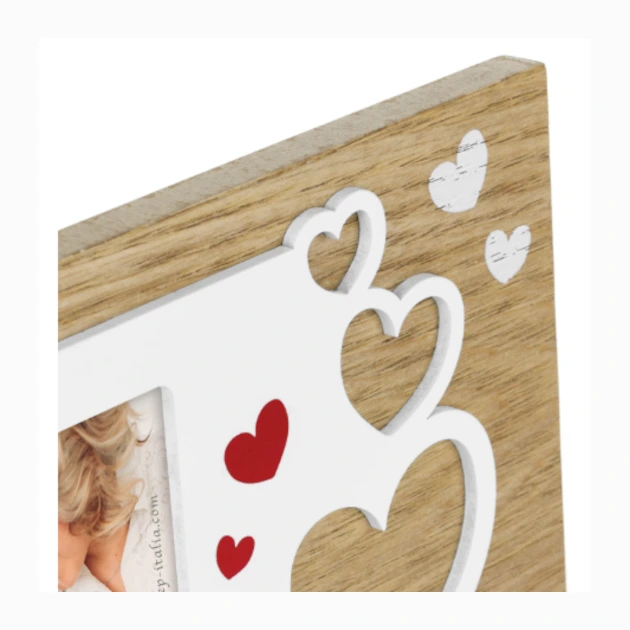 El Marco Mod. Giorgia Vertical 10×15 es un precioso marco en madera blanco y marrón con decoración en forma de corazones perforados en relieve rojos. Ideal para esos momentos especiales en los que quieres regalar el recuerdo de un momento entrañable. Podrás añadir simplemente tu foto favorita o incluso añadirle texto, dibujos…no hay limites para tu imaginación!