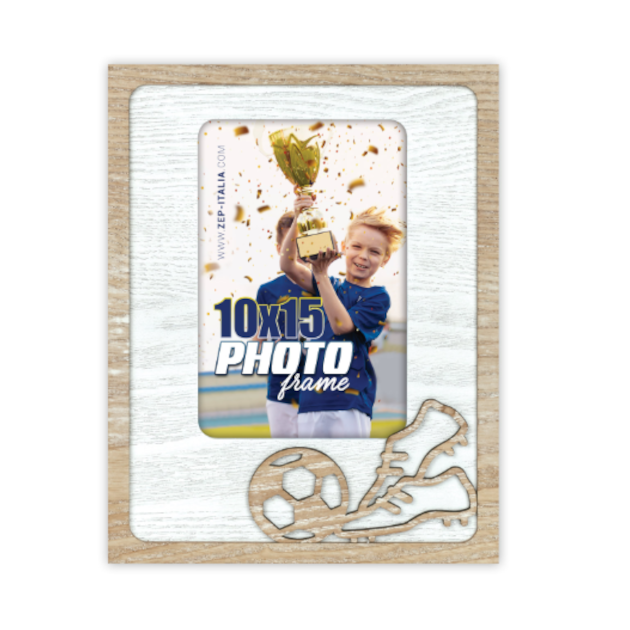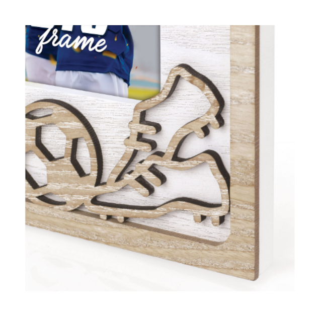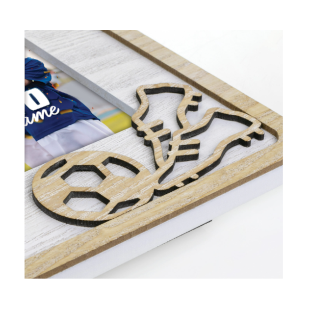 El Marco Mod. Maradona es un marco de madera blanco y marrón, con decoración en forma de balón y botas de fútbol en relieve. Marco de mesa, ideal como regalo para eventos deportivos e infantiles. Además podrás agregar simplemente tu foto favorita o incluso agregarle texto, dibujos… ¡no hay límites para tu imaginación!