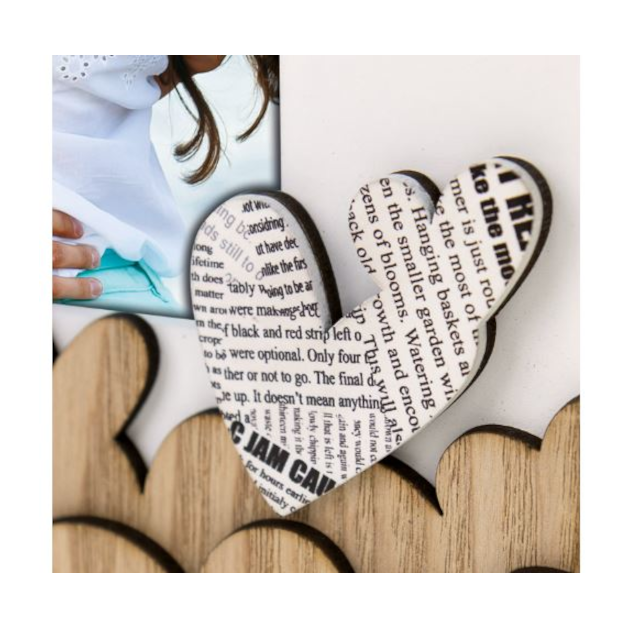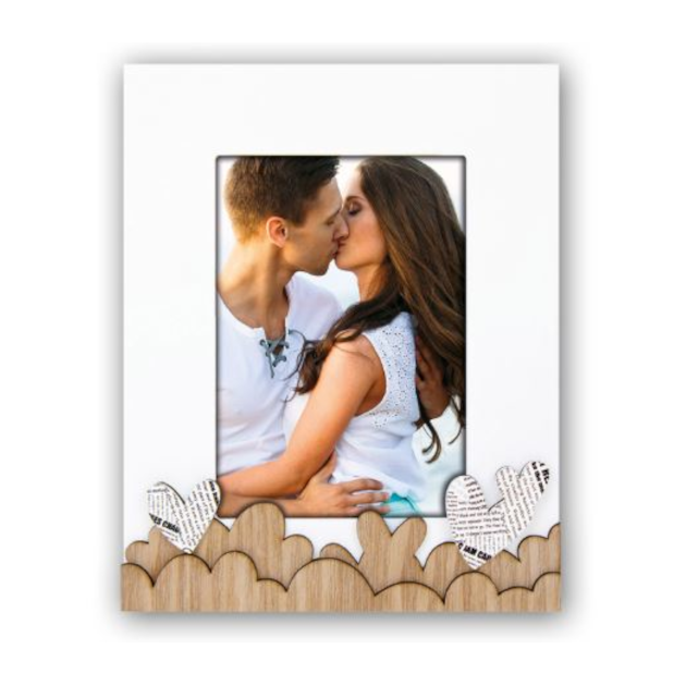 El Marco Mod. Romina Horizontal Vertical 13×18 es un precioso marco en madera blanco con corazones en relieve en madera y con estampado en letras de periódico. Ideal esos momentos especiales en los que quieres regalar el recuerdo de un momento entrañable. Podrás añadir simplemente tu foto favorita o incluso añadirle texto, dibujos…no hay limites para tu imaginación!