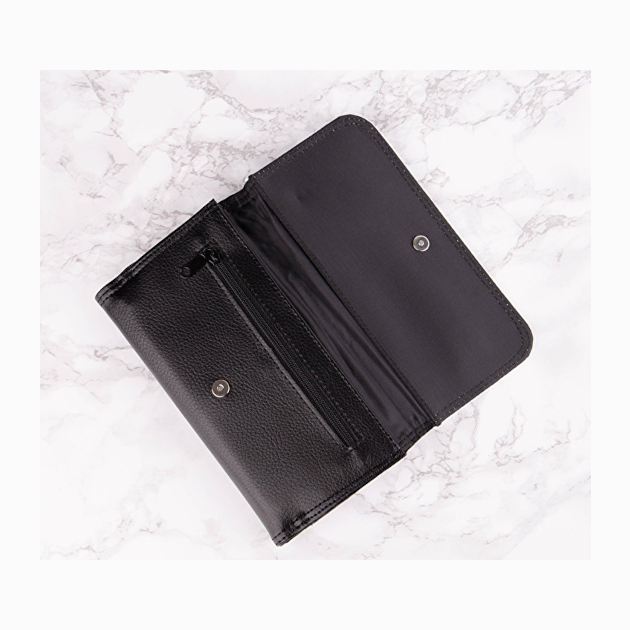 El bonito y práctico Monedero Polipiel es perfecto para hacer un práctico y original regalo. Es de polipiel en color negro con una solapa que podrás personalizar de la manera que más te guste.