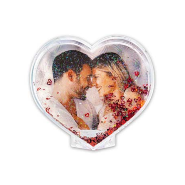 El Photo Globe Cuore es un corazón acrílico efecto transparente, con espacio para insertar una foto. Con agua, purpurina flotante y corazones. Ideal esos momentos especiales en los que quieres regalar el recuerdo de un momento entrañable. Podrás añadir simplemente tu foto favorita o incluso añadirle texto, dibujos…no hay limites para tu imaginación!