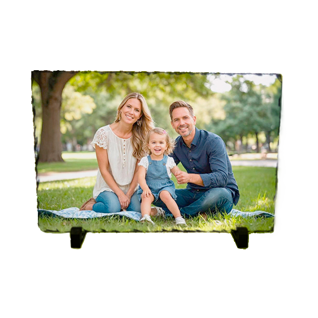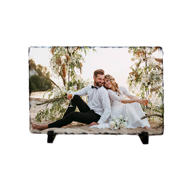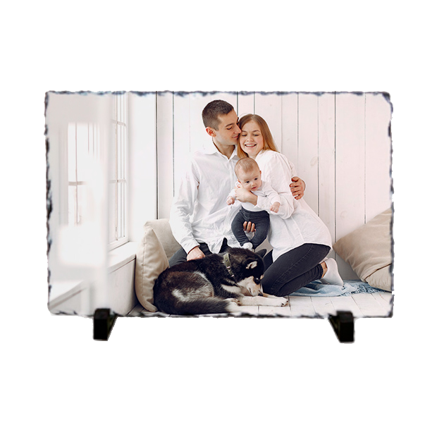 Nuestra Piedra Pizarra rectangular es un original portafotos de piedra pizarra disponible en varios tamaños. Es personalizable por técnica de sublimación.
